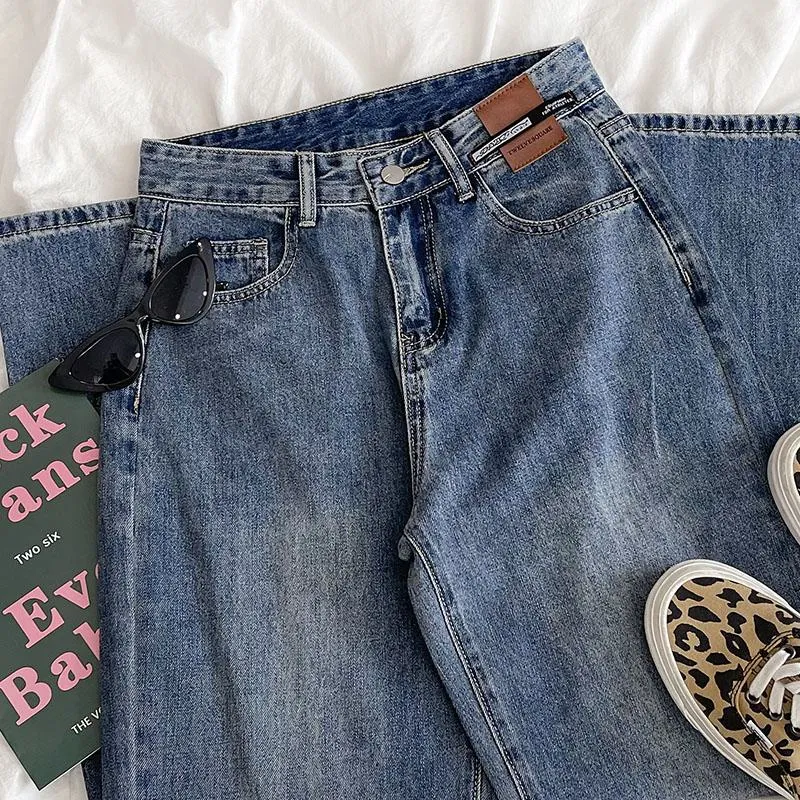 These Casual Floor-Length Straight High-Waisted Wide-Leg Retro Jeans offer a timeless look with a modern twist.